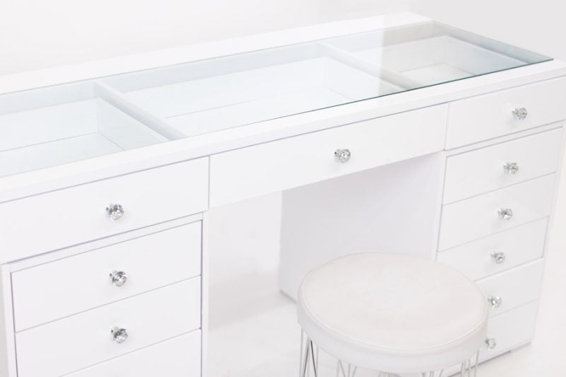 • Design Compact : Avec ses dimensions de 130 x 80 x 60 cm, la Mini Queen est parfaite pour optimiser votre espace tout en offrant une surface généreuse pour vos essentiels de beauté.